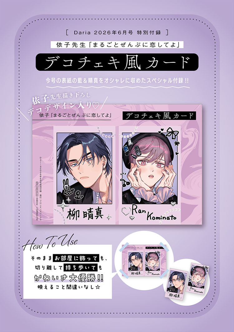 - ☆特別付録:「まるごとぜんぶに恋してよ」デコチェキ風カード